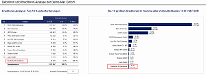 Debitoren-/Kreditoren-Analyse, d.h. Forderungen/Verbindlichkeiten nach Kunden/Lieferanten (Top 10 => absolut u. prozentual), inkl. Grafik