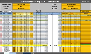Mit diesem Arbeitszeiterfassung- Programm auf Excel Basis haben Sie Ihre geleisteten Arbeitszeiten jederzeit leicht überschaubar und voll im Griff. Sie können Ihre Arbeitszeiten bequem erfassen und auswerten. Diese Arbeitszeiterfassung ist durch ihre farbliche Gestaltung leicht zu verstehen und bedienungsfreundlich.
