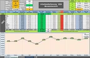 - Die geleisteten monatliche Arbeitsstunden.